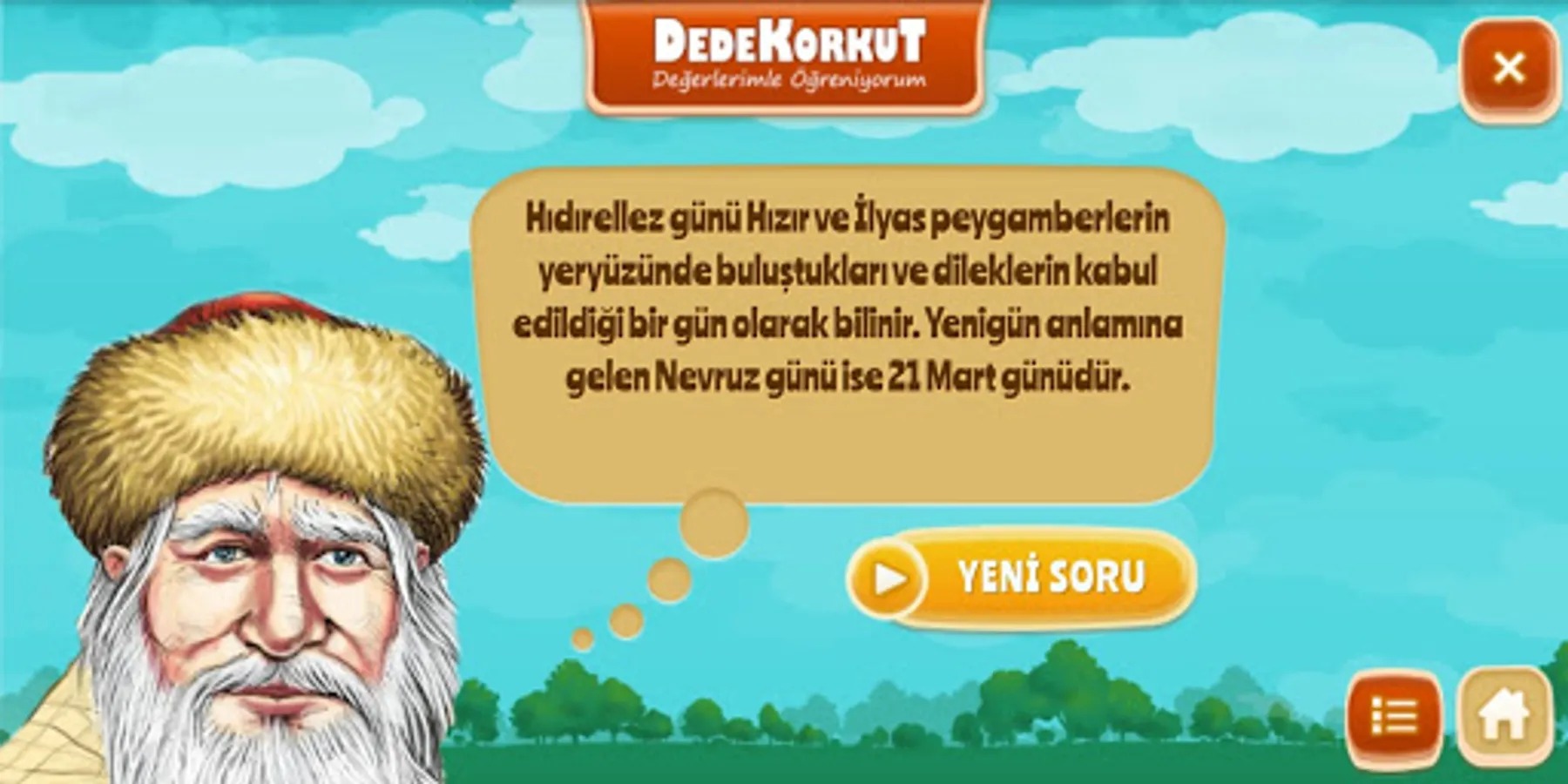 Our game with Dede Korkut Turkey, aims to teach children in a fun way by increasing their knowledge about Turkish history and values of our geography.