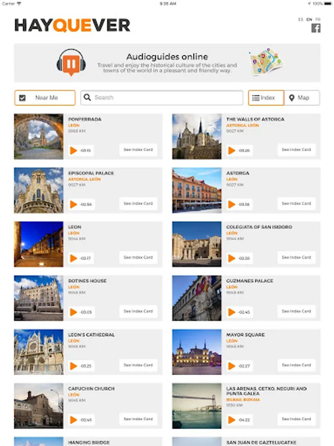 SEEING is a portal for online audio guides that allow you to travel thousands of places aportándote cultural and historical information on every street, every square, every monument ... Travel and enjoy the historical culture of the towns and villages of the world in a a pleasant and nearby.
