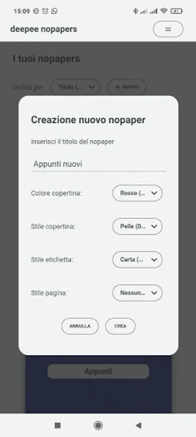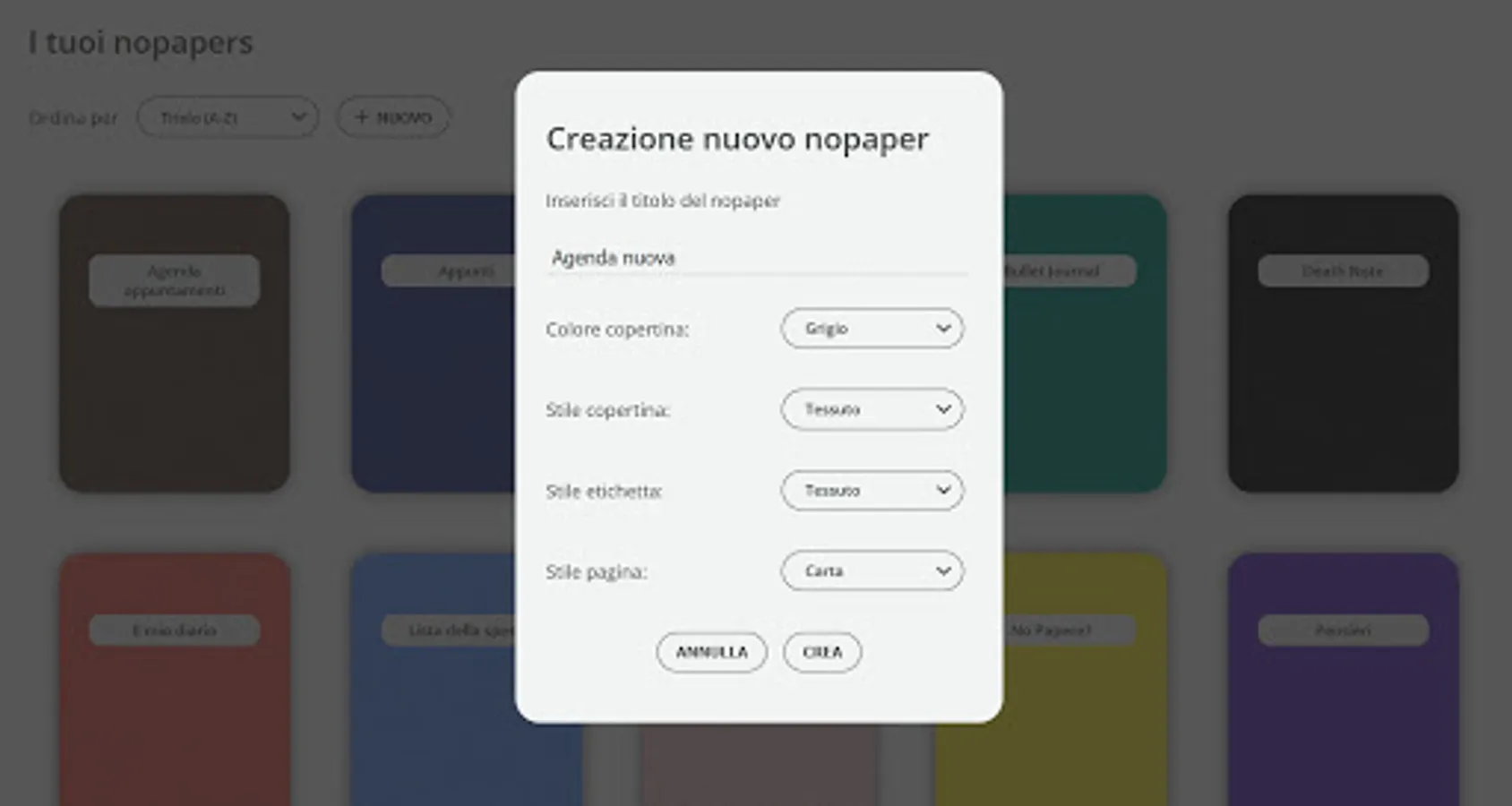 - Customize the nopapers: choose the title, the style of the cover, the label and the pages.