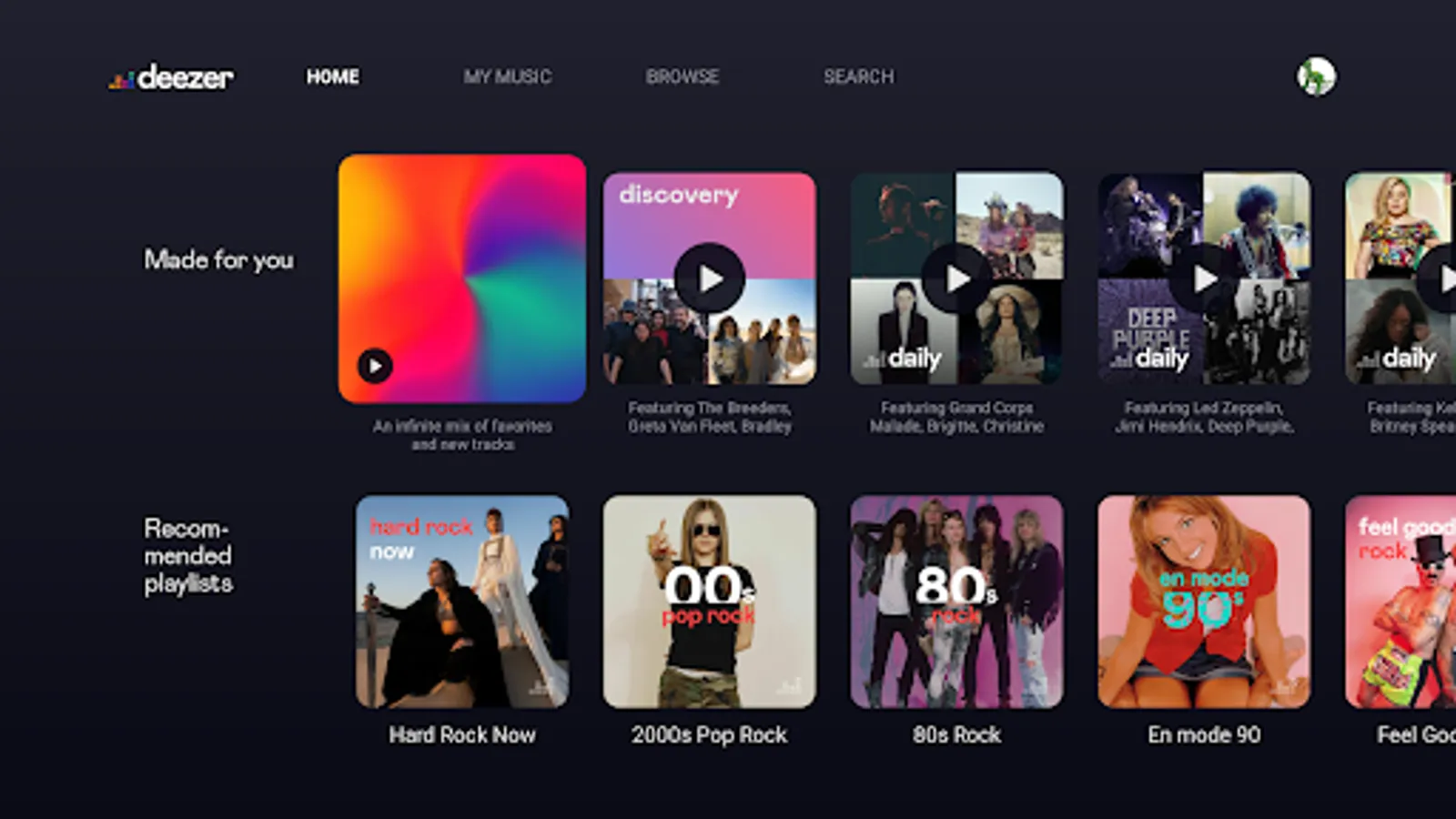 Music lover? Stream and listen to top radio hits or discover new songs with the Deezer music player on your Android TV. Access the best music, listen to your favorite live tunes and more when you turn your TV into a jukebox. Looking to discover new music? Browse Channels with your remote control or listen to Deezer Flow.
