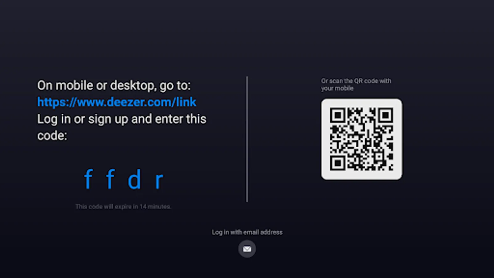 Synchronize your Deezer account with your TV app by entering a 4-digit code OR scanning the QR code displayed on your TV.