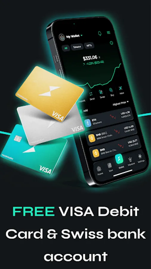 Non-custodial wallet, free VISA card, and complementary Swiss bank account for secure crypto management and cross-chain transactions.