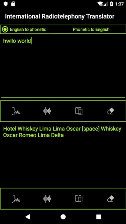 This translator converts the normal English alphabet into the International Radiotelephony Spelling Alphabet,