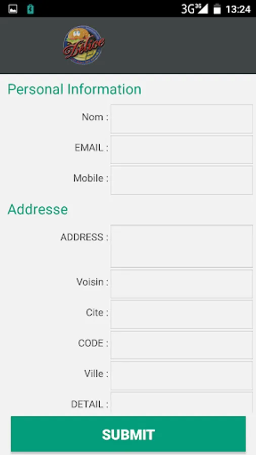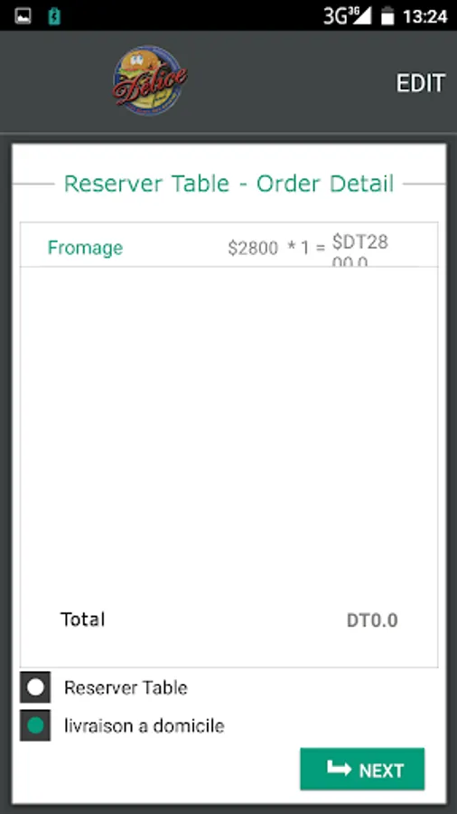 Application of home delivery for Delice Restaurant Food Kairouan Tunisia