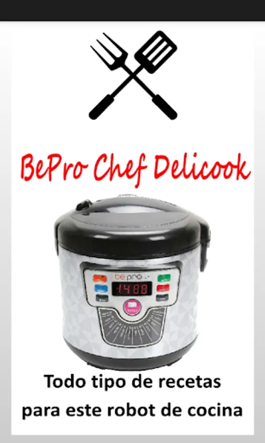 Application that includes a large number of recipes for the programmable cooker BePro Chef Delicook, useful kitchen robot. All of them can be found on the website http://beprochefdelicook.recetasconrobot.com/, in different categories: