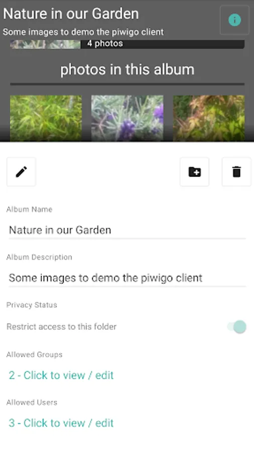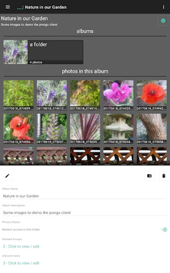 Supported server plugins : PiwigoClientWsExts, community, piwigo_privacy, videojs, user-tags, extended descriptions.