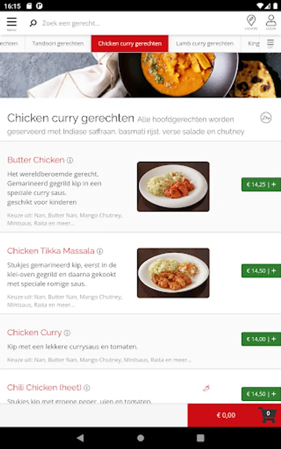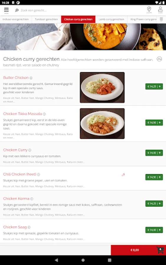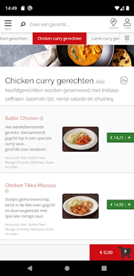 Order our delicious tandoori, butter chicken and other Indian and Surinamese dishes in just a few taps. How easy is that and delivered to your home in no time!