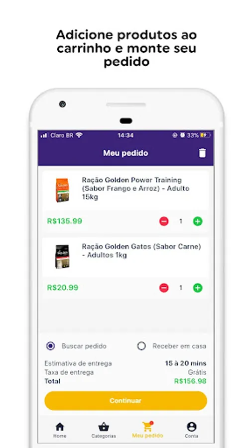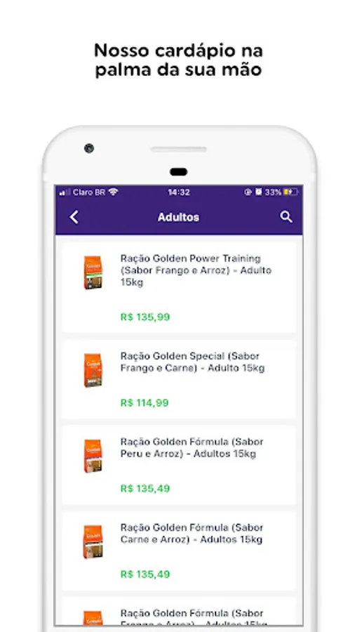 In our app you can quickly and conveniently find the petshop items available for delivery.