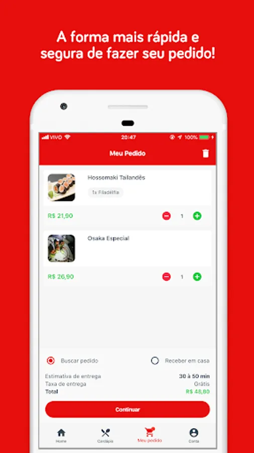 Phone is a thing of the past! The Sushiko application is perfect for you that likes practicality, agility and comfort when ordering! In addition to having unique advantages, you place your order entirely through the application.