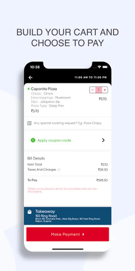 * Order in or choose to takeaway – You can either select delivery option or select takeaway to pick-up the order yourself.