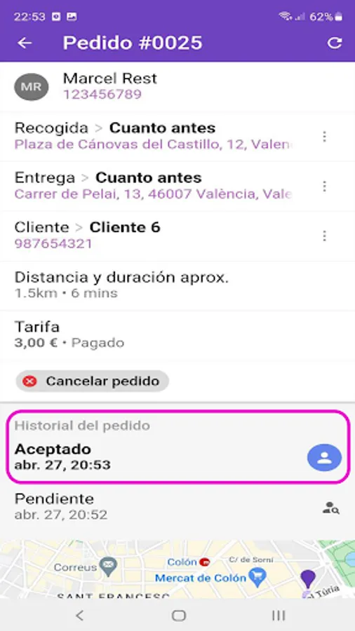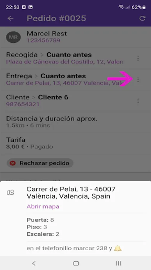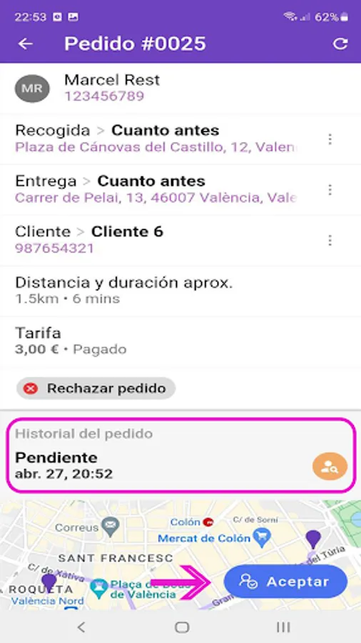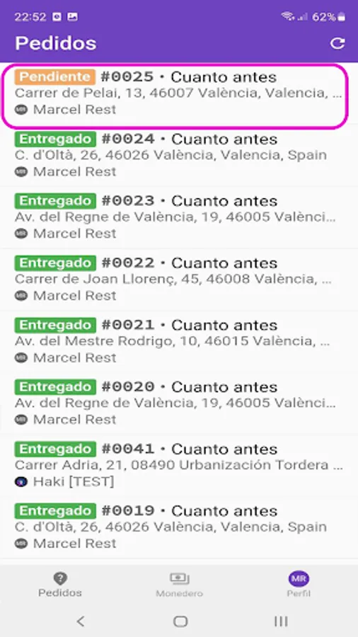 Gestión de pedidos para repartidores, contraparte de Haki Business