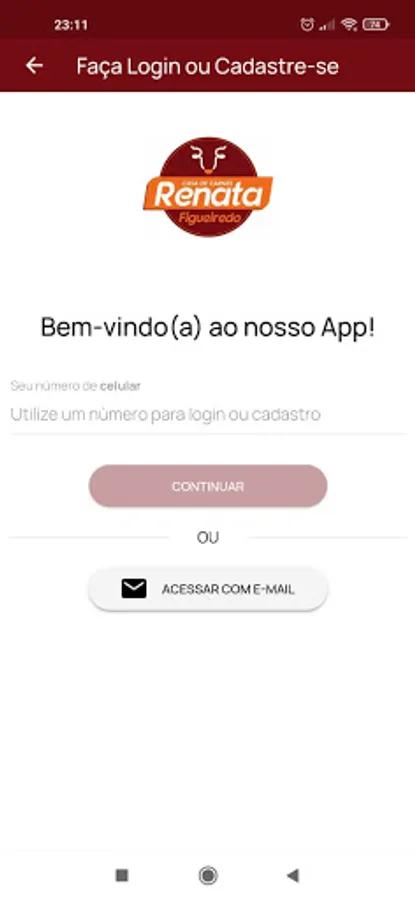 - If it is your first order in the Casa de Carnes Renata Figueiredo application, you will need to make a quick registration