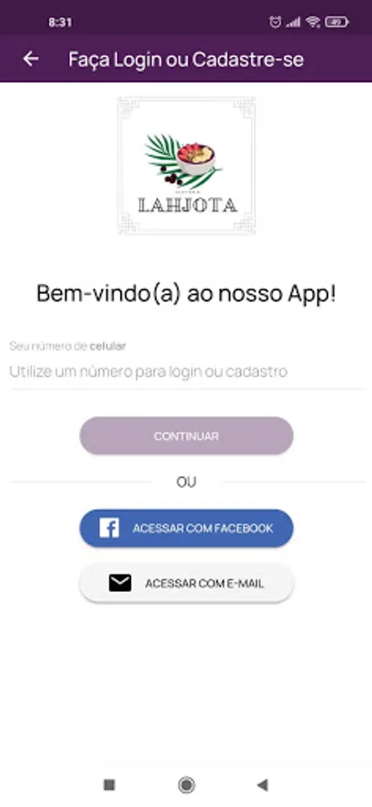 - If this is your first order in the Lahjota Acaiteria app, you will need to make a quick registration