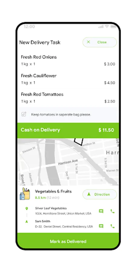 In the delivery app, users need to accept new deliveries. This user-friendly app provides updates on packages from pickup to delivery.