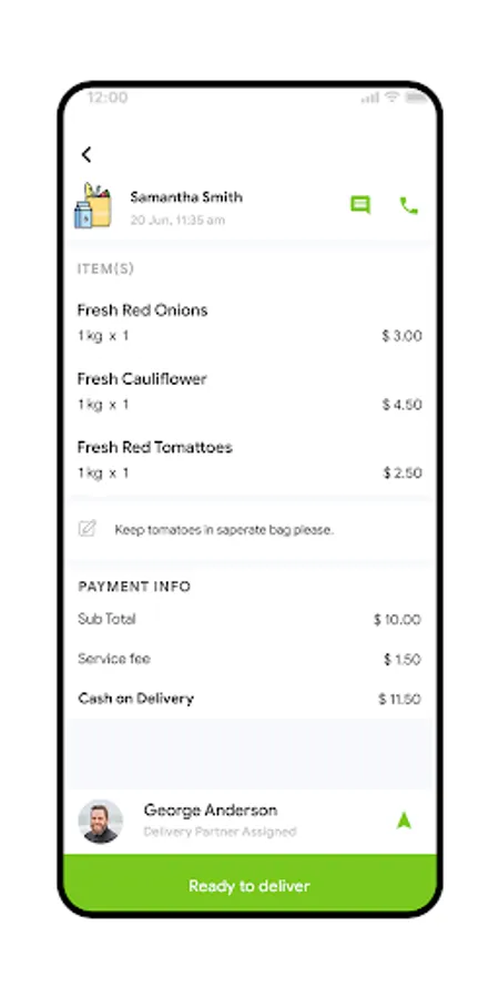 Chat with customer & track deliveryman feature is also incorporated into this store app. Users can check both past deliveries as well as new orders.