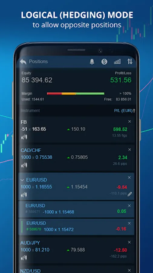 - Monitor your open positions, pending and executed orders, and receive near-instant quotes of your chosen financial instruments with just a few taps on your mobile device