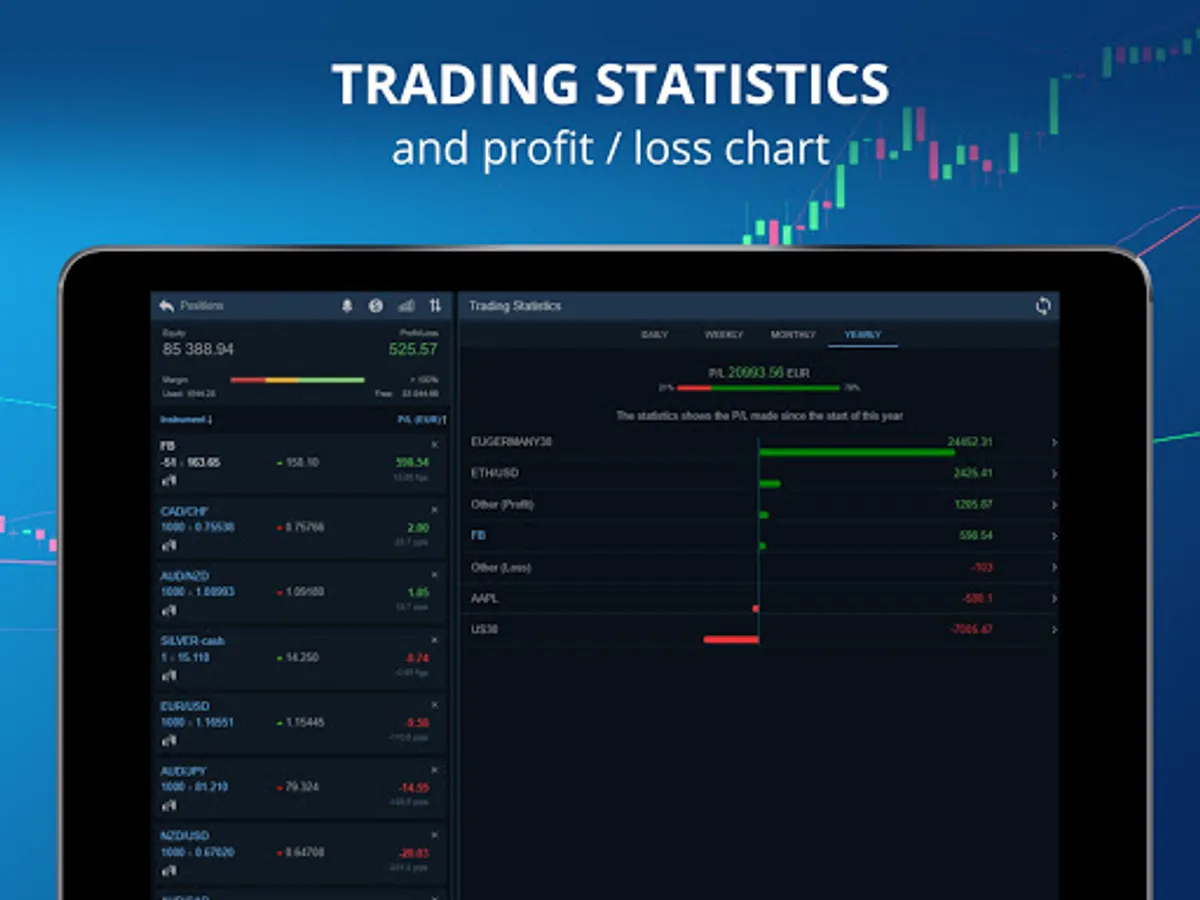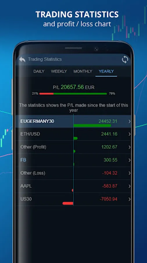 - Benefit from detailed profit/loss charts and market data fetched in real time