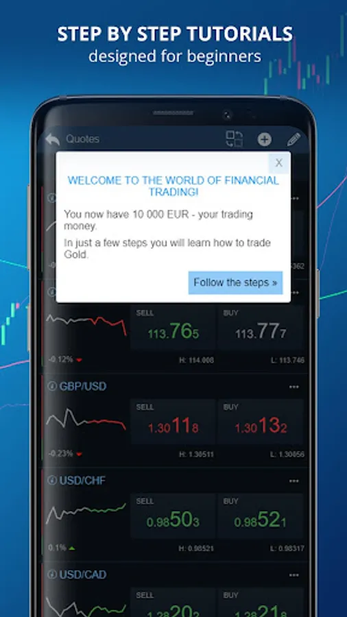 Both seasoned and novice traders can use our app to open a demo trading account* in less than a minute, allowing them to try their hand at trading and test the market waters with a virtual account balance of €10,000, without the risk of losing any real money. Of course, they can also jump right into the trading action by opening a live account instead.