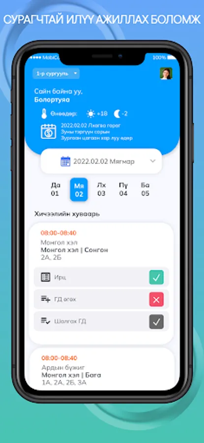 eTeacher аппликейшнийг зөвхөн багш эрхтэй хэрэглэгчид ашиглана. Дараах үйлдлүүдийг хийнэ: