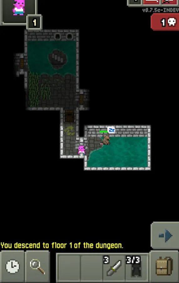 This is a small modification of Shattered Pixel Dungeon, which is an enhancement of the amazing game called Pixel Dungeon. Both Pixel Dungeon and Shattered Pixel Dungeon are Open Source and belong to the roguelike genre: randomly generated levels, turn-based movement, lots of dying.