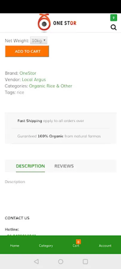 Onestor is an online store for organic fruits, vegetables and groceries.