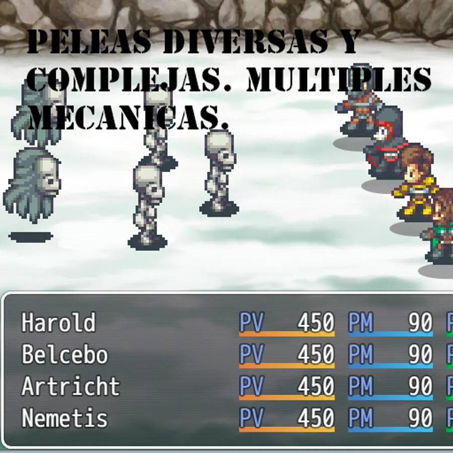 Combat mode in true RPG style, taking turns using magic and skills. You will have different animations such as poisoning, healing, confusion ... Every 5 levels you will get a new magic / ability for your character.