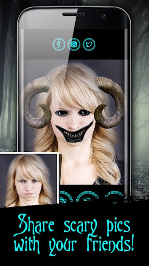 Visit the horror photo booth whenever you feel like doing pranks on your friends! Make devil horns part of your photo montages by using the scary camera. You can have a female devil face within seconds. All you have to do is take a photo with the 🔱Devil Face Camera🔥, or upload one from your device, select the photo stickers you like, and your horn photo is ready. This devil face changer features even female devil horns. Horror photo editing is now possible for free thanks to the spooky photo editor. Have one of the best monster photo editor apps on your device!