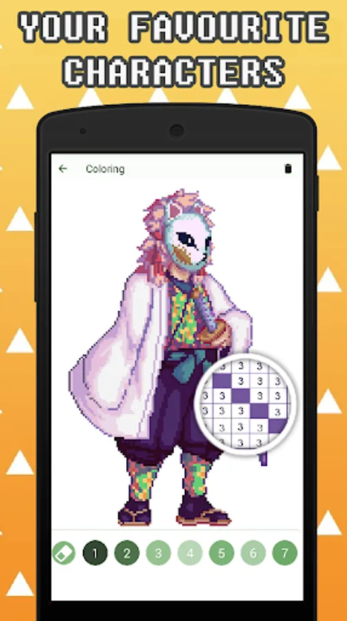 We are big fans of Demon Slayer: Kimetsu no Yaiba. We created the KNY color by number coloring book app for Demon Slayer: Kimetsu no Yaiba fans from all countirs. This color by number application offers you the most beautiful pixel art of characters from the anime like Tanjirou, Nezuko, Zenitsu, Inosuke, Tomioka Giyuu...