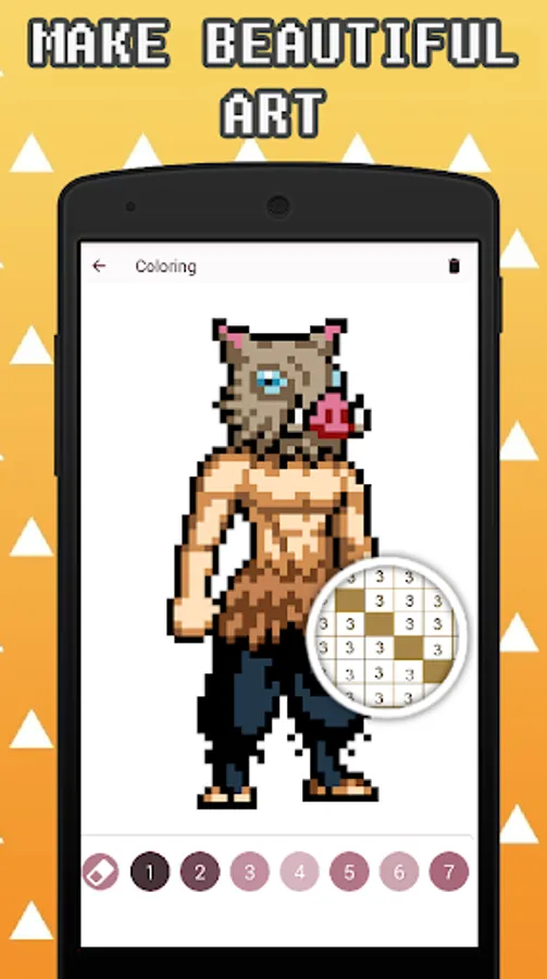 Color By Number demon slayer is a free and relaxing color by number pixel art coloring app for Kimetsu no Yaiba. KNY color by number has over 20 characters specifically made in hand-made stunning pixel art optimized for colorng by number. Pick your favorite character from Kimetsu no Yaiba and have hours of endless fun while making a beautiful piece of art.