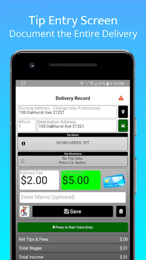 Tracking your tips is a good thing. But is that all you want to know? You may also be working for wages, sometimes dual wages, delivery fees; and of course, tips. Do you get reimbursed for mileage? Do you track your mileage for expense purposes? Do you work for dual wages and are affected by tip crediting? Would you like to know what your best tipping days and hours are so that you can adjust your work schedule accordingly? How about getting a recap of all your deliveries, including addresses, times and miles driven? If you want to know what you really are earning, then iDeliverPro is your answer.