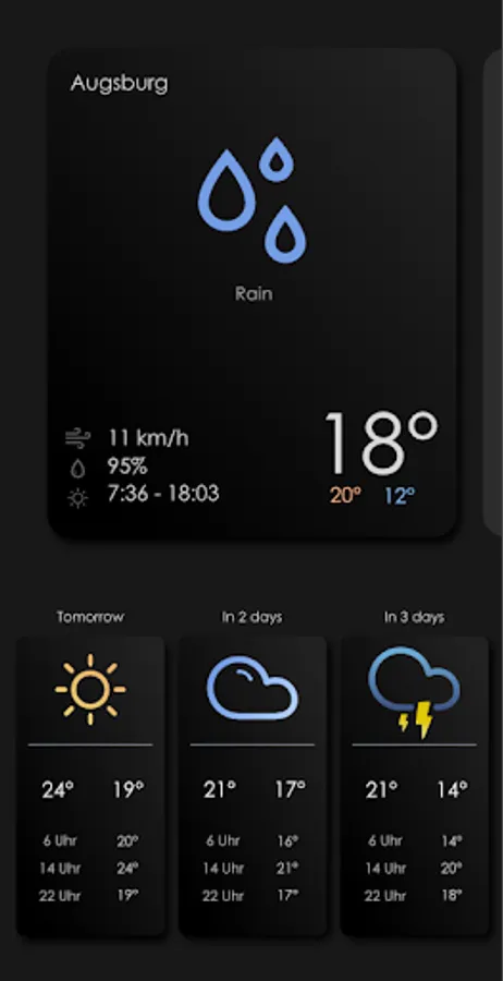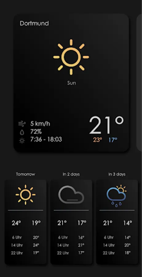 Forecasts for the next three days are presented clearly and beautifully for you at a glance.