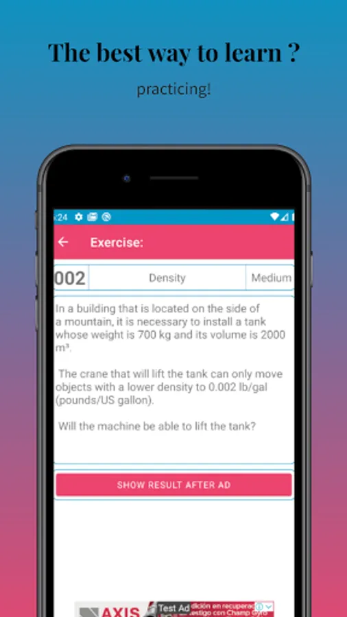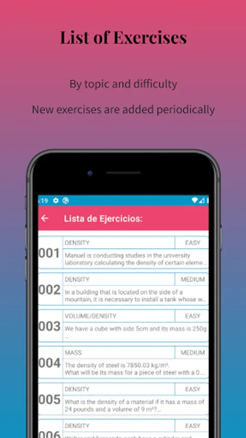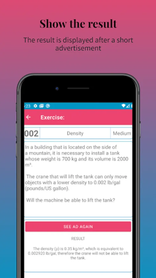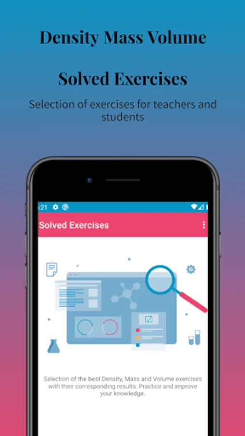 This application is intended for professors, teachers and students who want to learn to calculate density, mass and volume exercises.