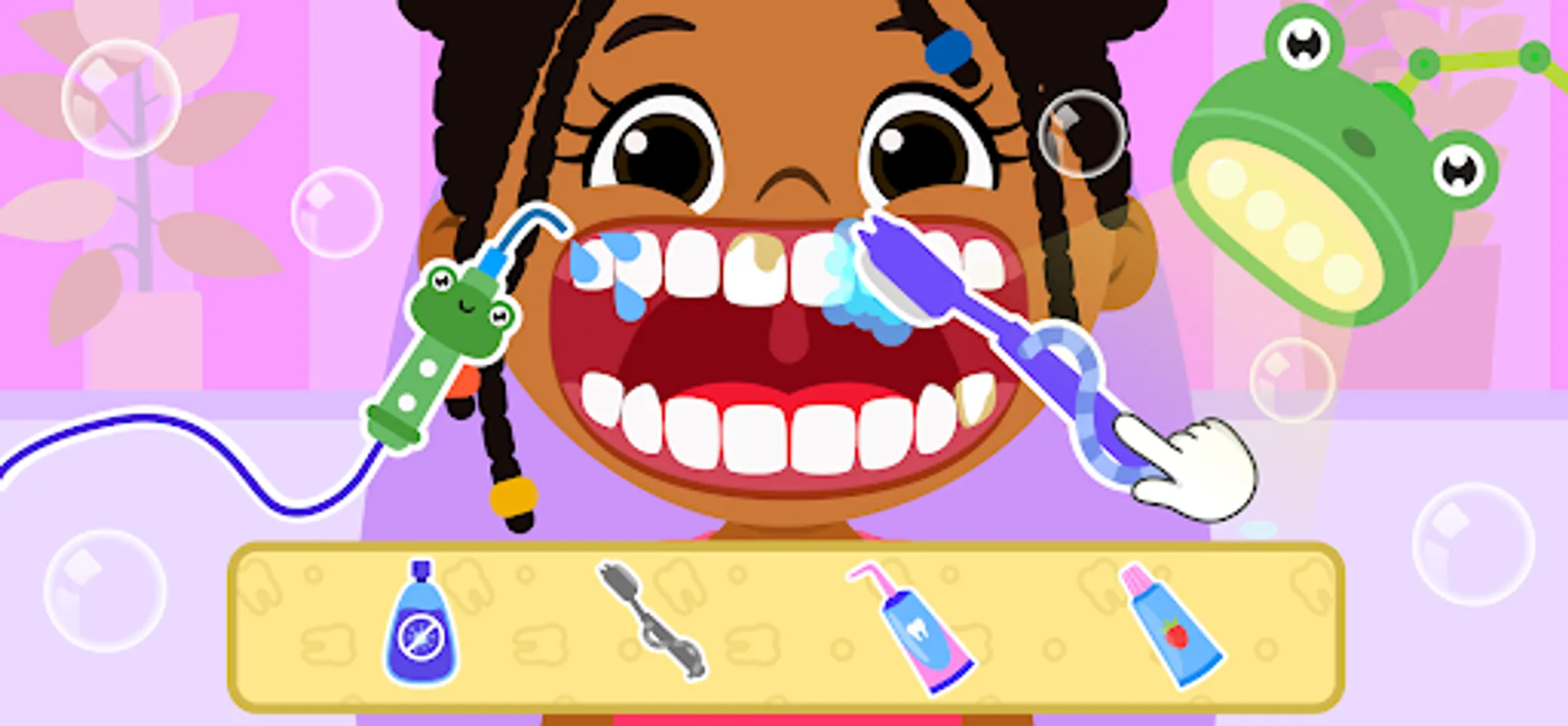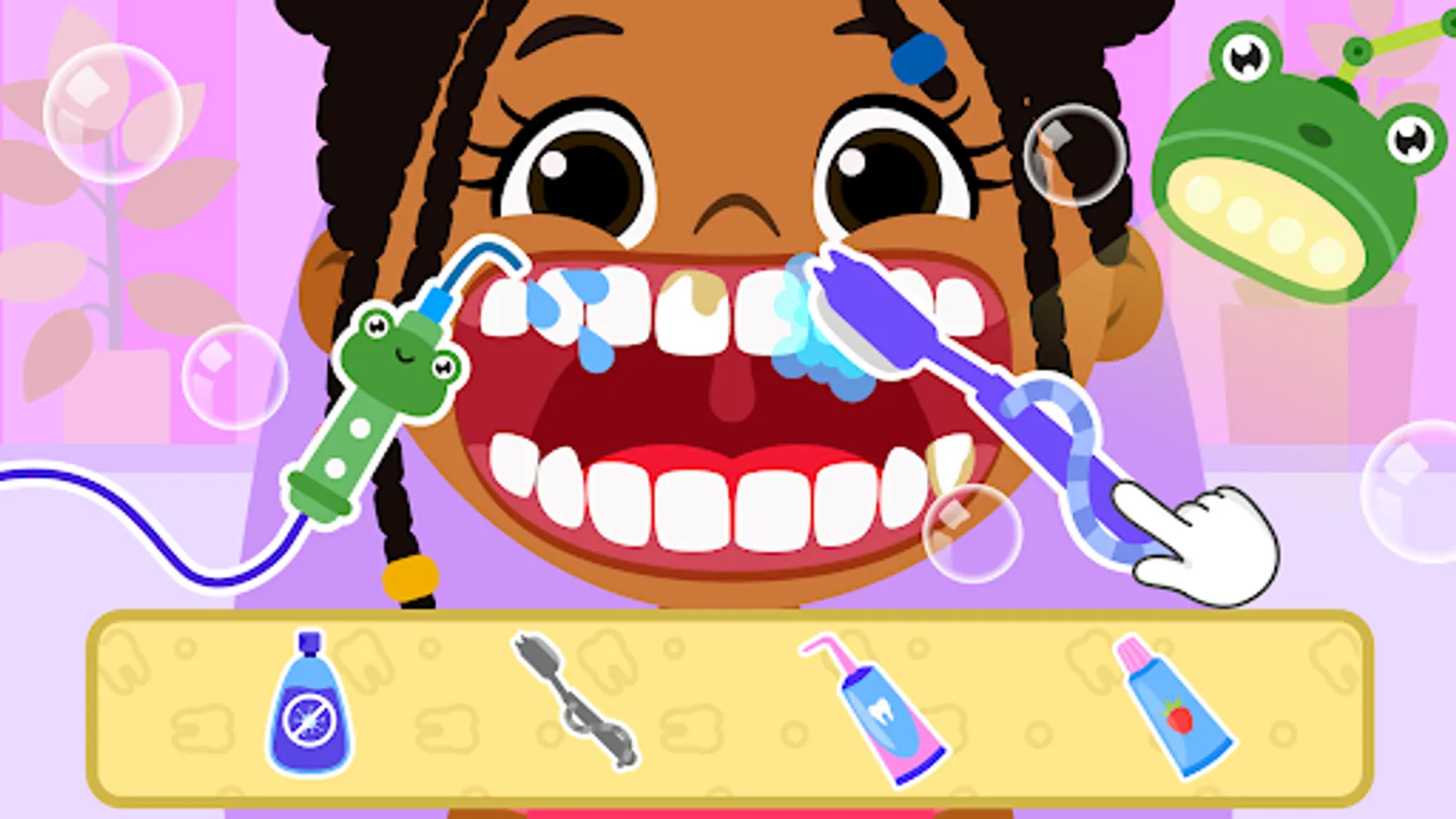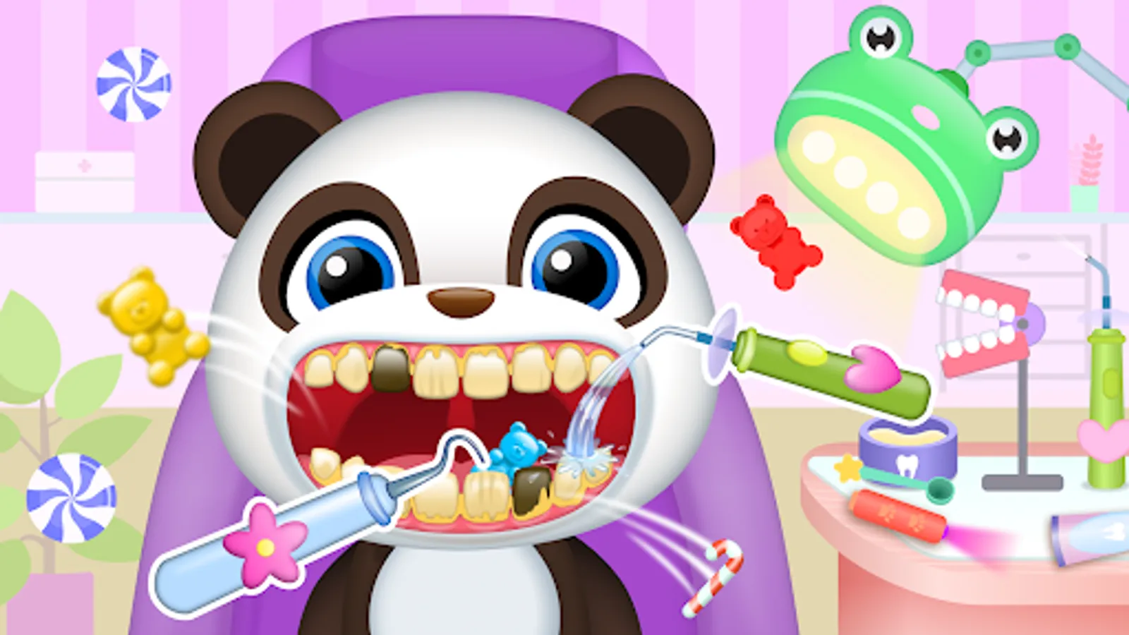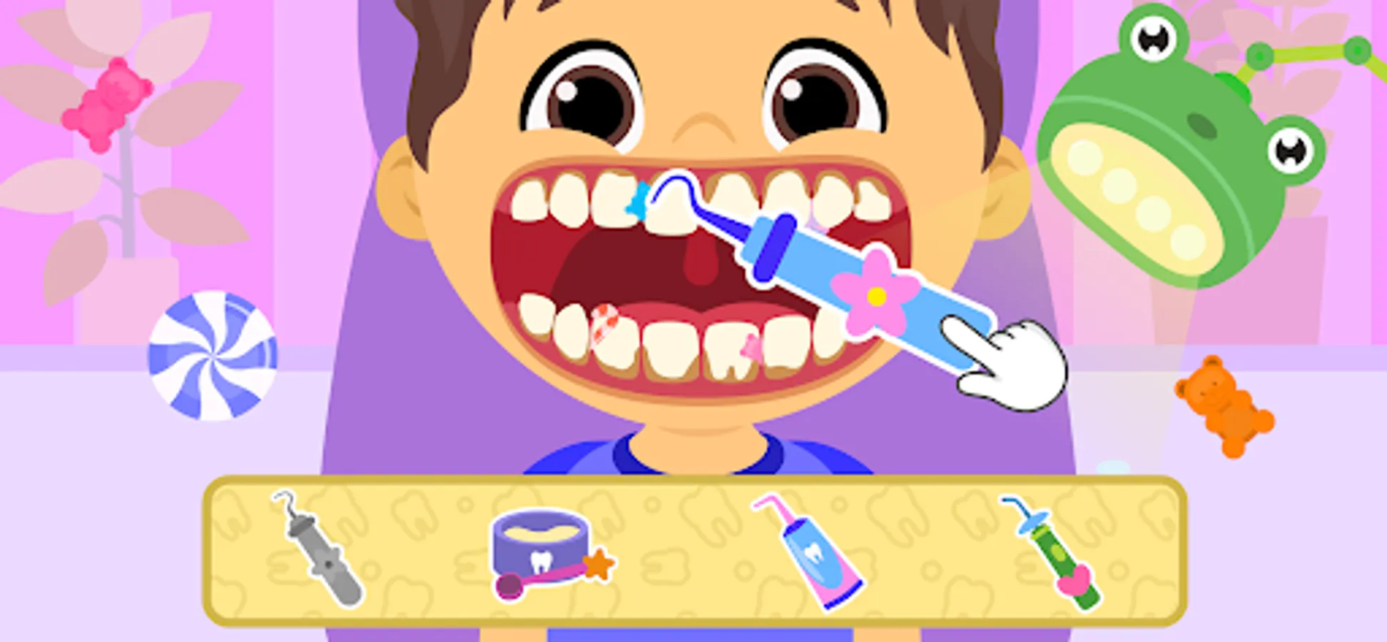 Before you start to play kids games for girls & boys, watch a small tutorial to become familiar with the problem of the patient and learn more about the exact instrumentary you will need while treating. Tap on the button and start to play baby dentist game for toddlers!