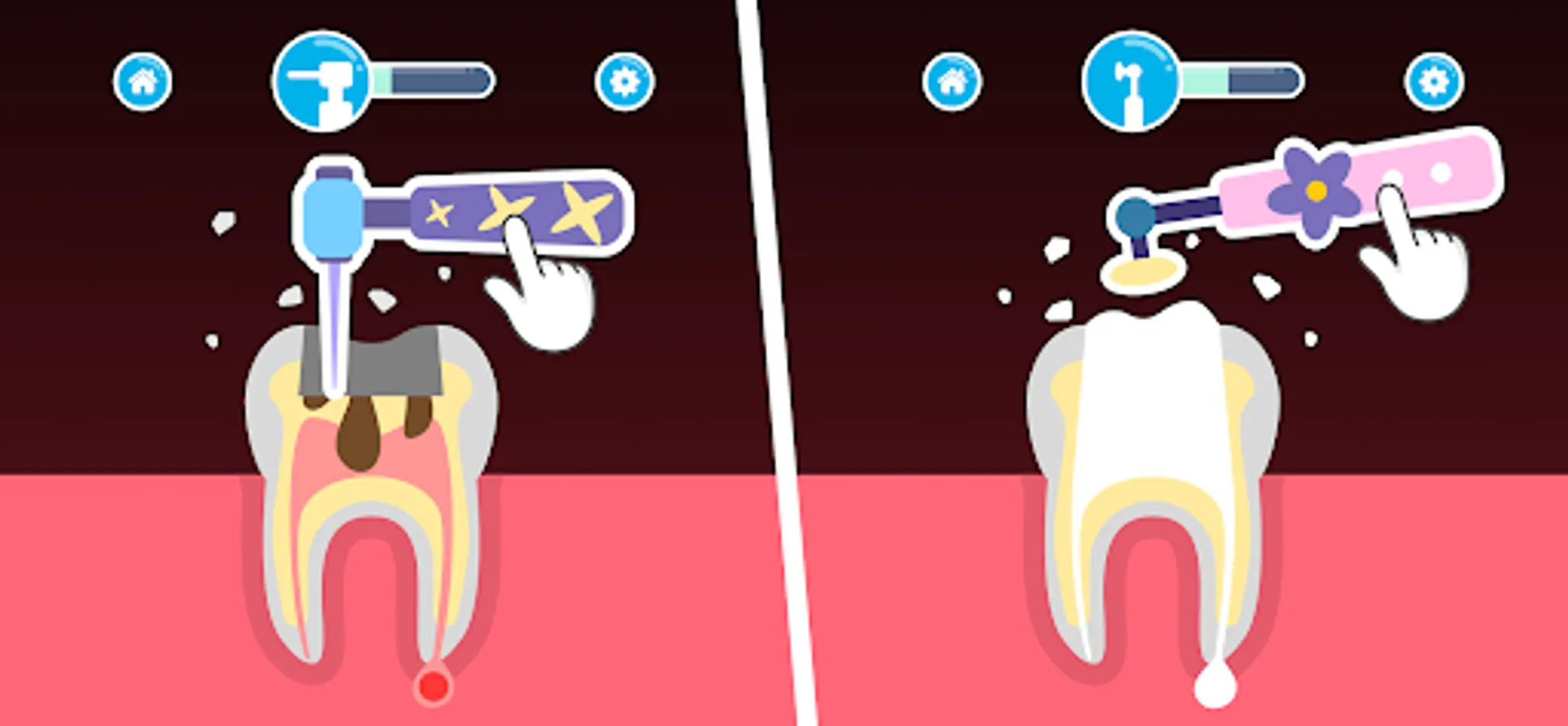 Our dental games are easy to use and have a fairly simple interface, due to which the kid will be able to play the mouth games on their own, without the help of parents. Now your kids can not only have a good time, but also stop being afraid of dantists.