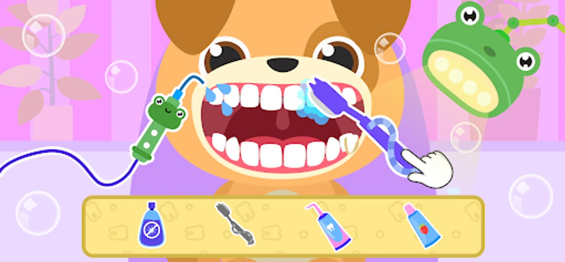 In our offline dentistry simulator boys and girls will help little animals in treating their teeth! Become familiar with the state of the oral cavity of the patient, use all the necessary tools, clean the teeth of food debris and rinse them with a special solution.