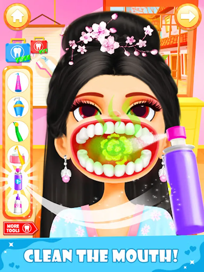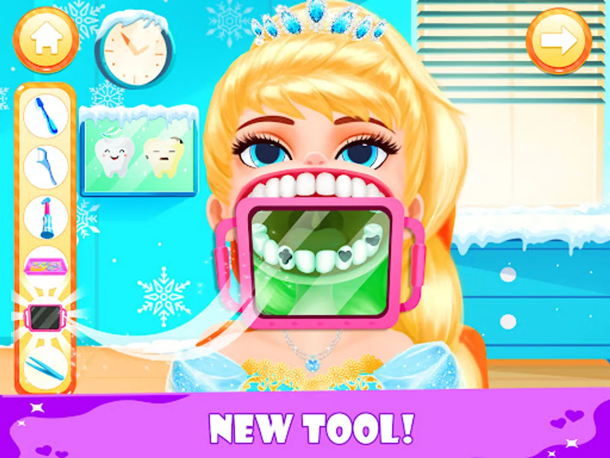 This is a simulated dentist game: the princesses come to your little clinic for various reasons. They need your help. Please use tools and treat with your heart. The princesses will be grateful to you!