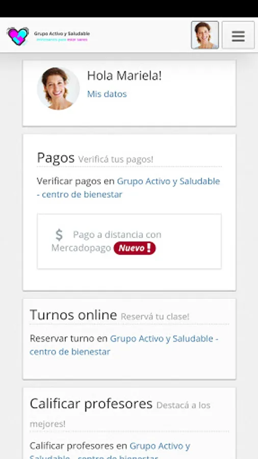 The new Active and Healthy Group App - wellness center allows all members to access their training and nutritional plans, book classes, check due dates, qualify teachers and much more!