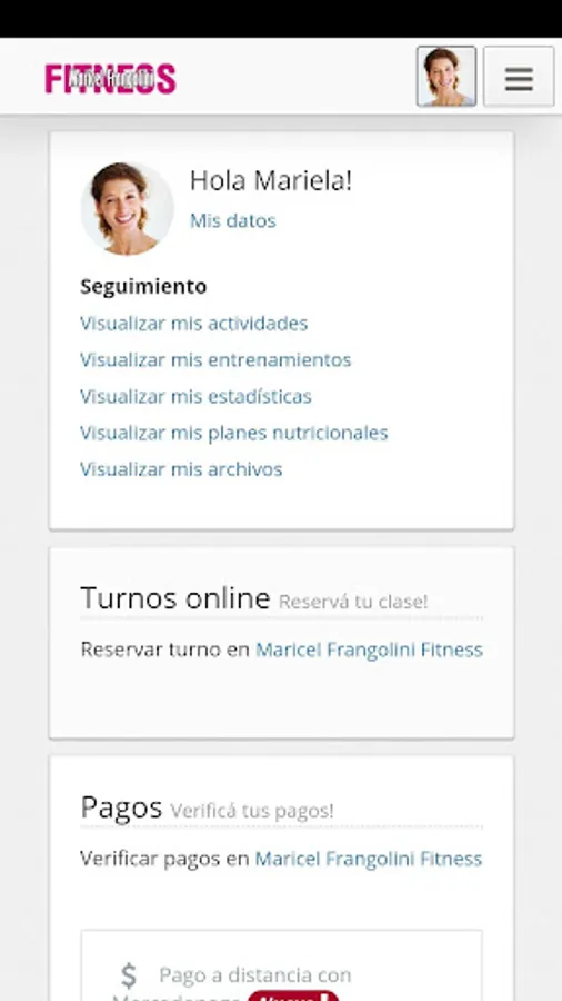 The new Maricel Frangolini Fitness App allows all members to access their training and nutritional plans, book classes, check due dates, qualify teachers and much more!
