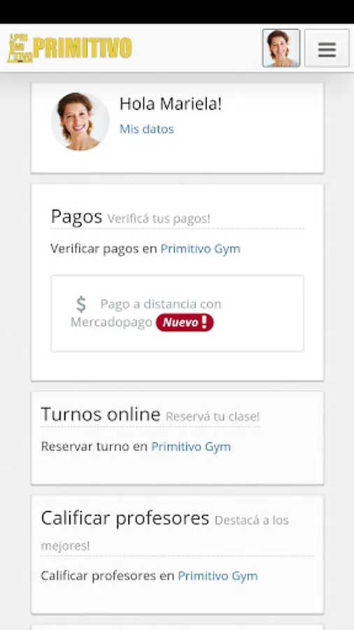 The new Primitivo Gym App allows all members to access their training and nutritional plans, book classes, check due dates, qualify teachers and much more!