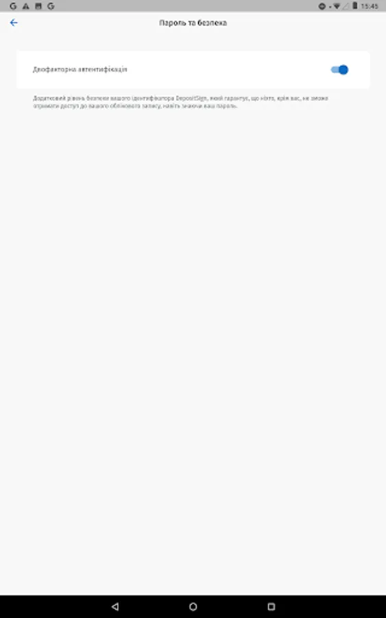 The DepositSign mobile application is an integral part of the DepositSign electronic service, the feature of which is the storage of private keys, using the hardware and software of a qualified electronic signature (depository).