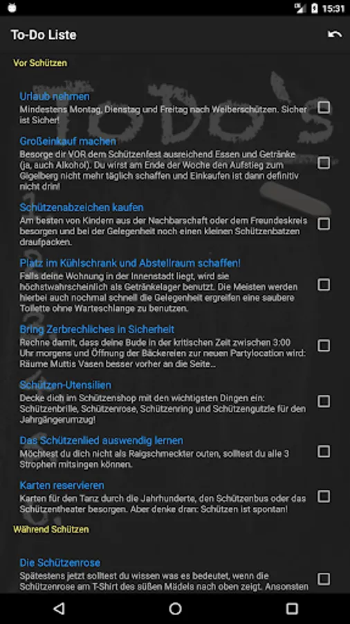 Here you can find the schützensong, all the events, a chat, a map with all locations, the bus timetable and many many more.