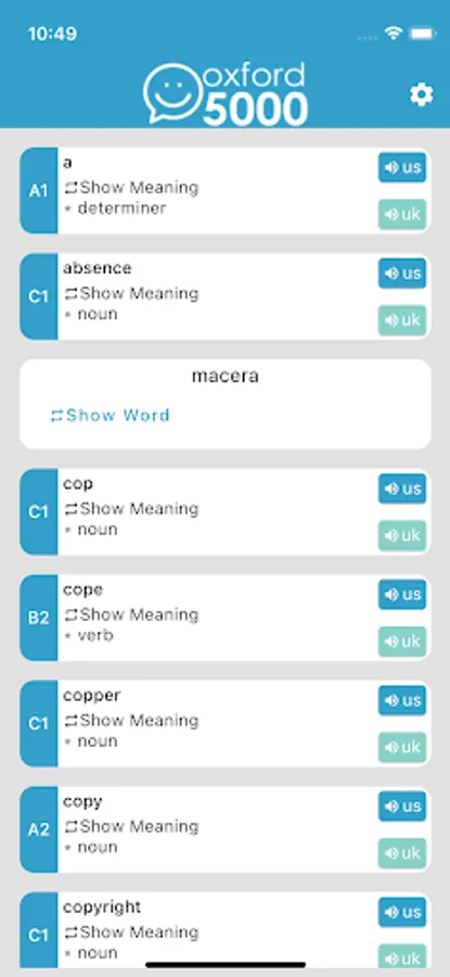 İngilizce Kelime hazinenizi genişletmek için oxford 3000 ve oxford 5000 kelime ezberlemeye yardımcı olmak amacıyla hazırlanmıştır.. Bu uygulamada dil uzmanları ve deneyimli İngilizce eğitimcileri tarafından seçilmiş yaklaşık 5000 önemli kelime bulunmaktadır. Bu kelimeler, Oxford ve Amerikan İngilizce kelime kaynaklarından özenle seçildi. Bu kelimelerin öğrenilmesi İngilizce seviyenizi iyi bir noktaya taşıyacaktır.
