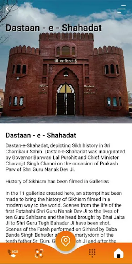 Dastaan-e-Shahadat is a trustworthy and user-friendly travel companion that will guide you to the epicentre of Sri Anandpur Sahib. Dastaan-e-Shahadat uses Geo Location to provide a memorable Audio Guided Tour experience; you may listen to the Audio with your personal headset while being completely independent. It's like having a local friend who walks you through the Museum, but with the added benefit of knowledge as a Digital Tour Guide.