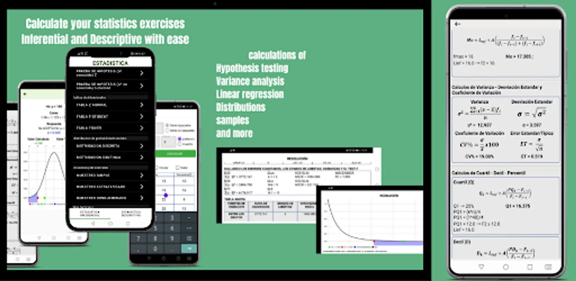 Easily solve descriptive or inferential statistical calculations with our application, which allows you to perform calculations for inferential and descriptive statistics quickly and easily. We can solve calculations for variance, one or two-sample hypothesis testing, proportions, distribution tables, and any other indicators of inferential and descriptive statistics. Our application provides you with the necessary tools to make statistical calculations more efficient.