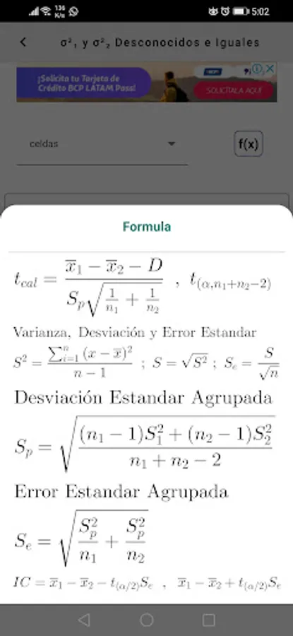 If you want to see which formula is being used, you can go to the formula icon located in each functionality. To better view the graphs, you can use your fingers to zoom in horizontally or vertically.