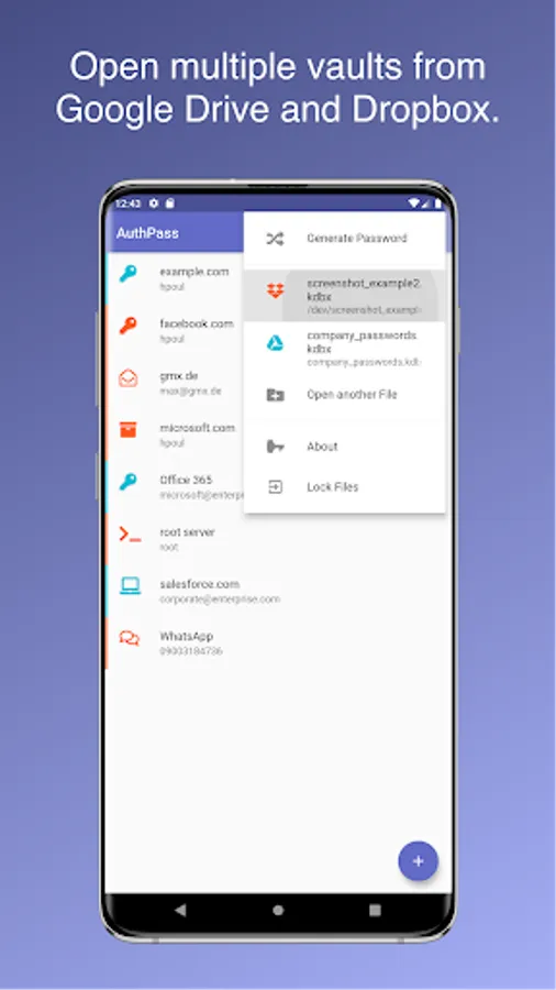 AuthPass is a stand alone password manager with support for the popular and proven Keepass (kdbx 3.x AND kdbx 4.x 🎉️) format. Store your passwords, share across all your devices and easily find them whenever you need to login.