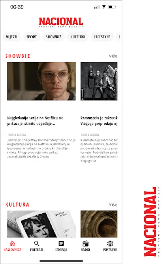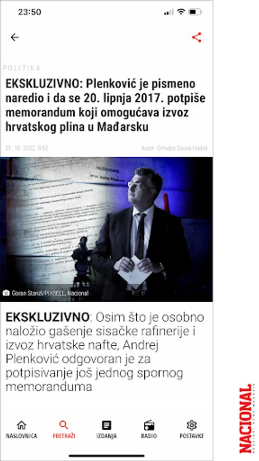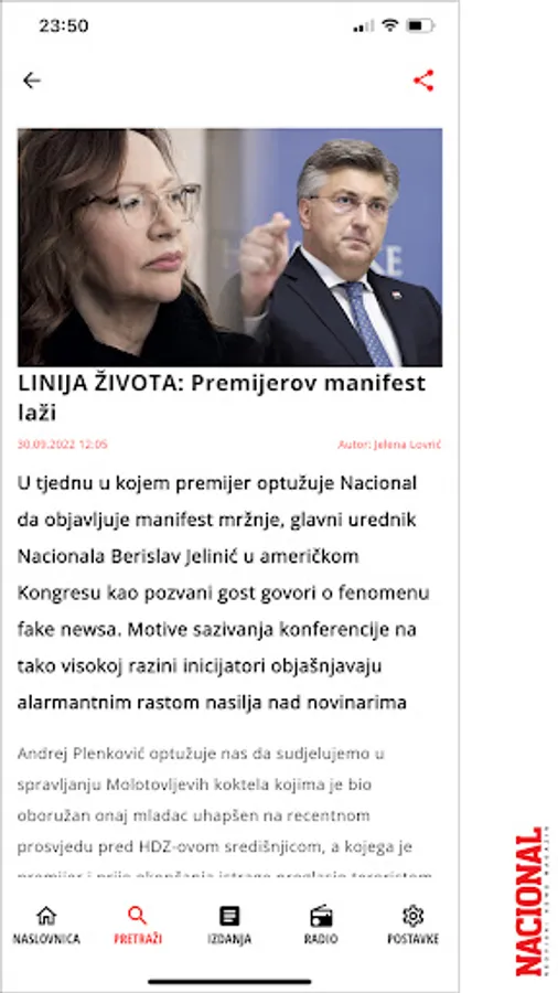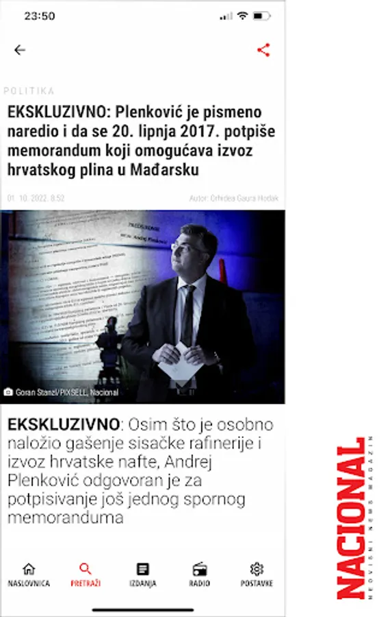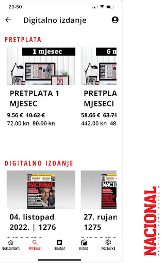 Nacional is created and written for by the best Croatian editors, journalists and columnists. Well thought out editorial concept and exclusive themes. Unique and recognizable style, intriguing content, relentless on the way to the truth and interesting stories from the sphere of political life, labor and capital markets and other topics of interest to Croatian citizens. Great reports from science, culture and social life.