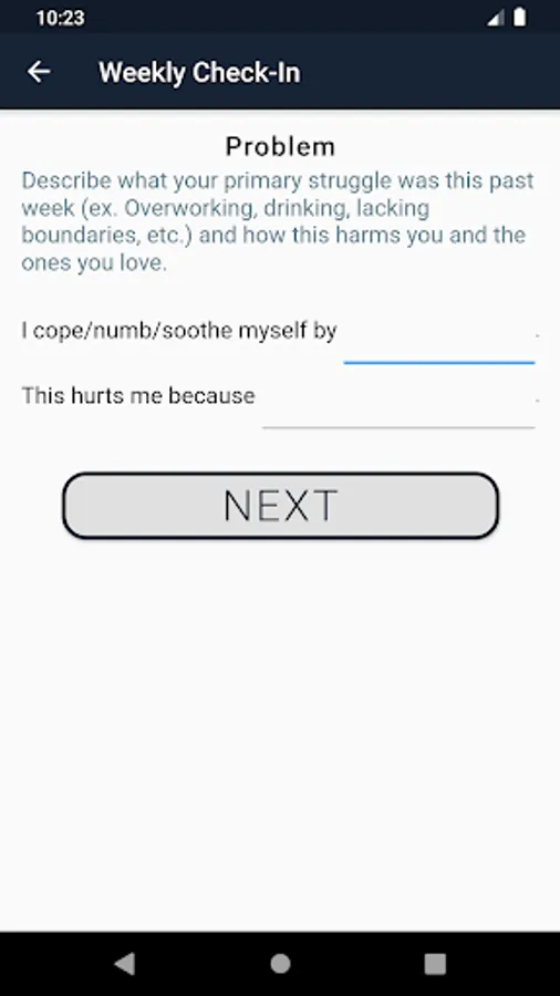 This app is designed to help you maintain an ongoing inventory, based on Step 10 of the 12 Steps. Each day, you'll be reminded to take a few moments to rate yourself on the pairs of traits/actions based on the previous 24 hours. Each week, you'll also be given the opportunity to reflect on the success of your past week and to plan for the week ahead. You can then share your results with a sponsor or friend for deeper accountability.