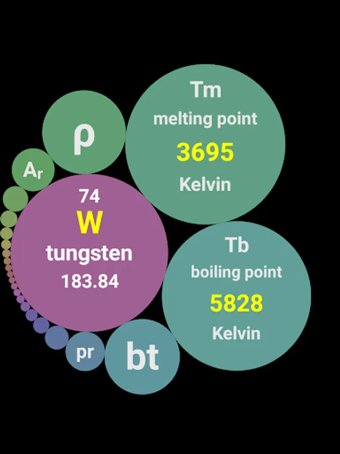 Simply sort on discovery date, melting point, density or any other property, and glimpse the progression.