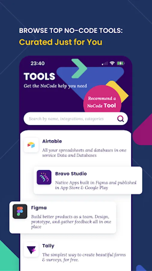 Understanding the importance of creativity and innovation in digital ventures, the app is dedicated to helping you bring your ideas to life. Access the necessary tools and resources to turn your unique visions into reality, allowing you to concentrate on your projects. Benefit from a comprehensive resource center with tutorials, videos, and educational content, helping you effectively utilize no-code tools.